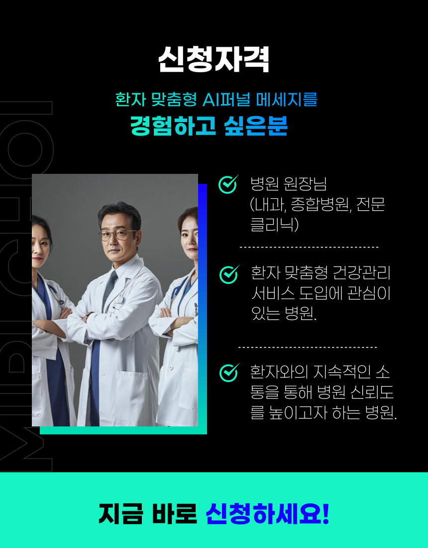 맞춤 건강 관리 시스템을 체험하고 싶은 병의원 원장님과 전문의님께 추천합니다